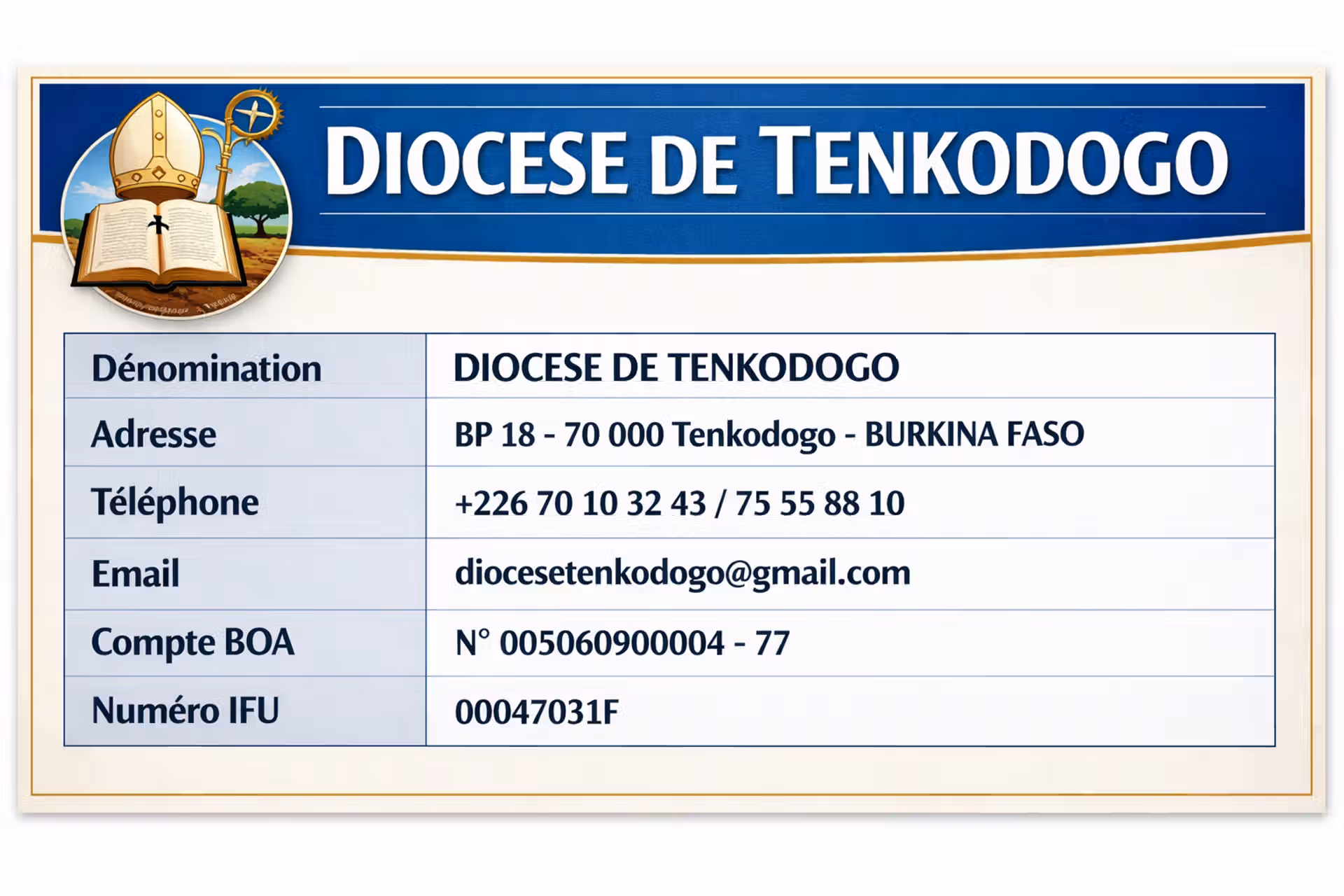 ACCUEIL Le diocèse de Tenkodogo vous propose ce qui suit pour vous permettre de mieux visiter le site. Pour cela, nous avons listé quatre parties essentielles. Dans chaque partie, vous avez les informations correspondantes. ACTUALITES LE DIOCESE LES PAROISSES LA PASTORALE
